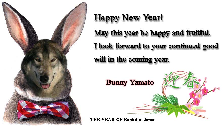 あけおめです^^ラビット・・・ではなく、ヤマットです~本来はご馳走のウサギちゃんですが、ヤマトは絶対食べる事はおろか、ぴょんぴょん飛ばれたら逃げるのは間違いないです;それにしても、似合わないですよね、ウサギちゃんスタイル~笑